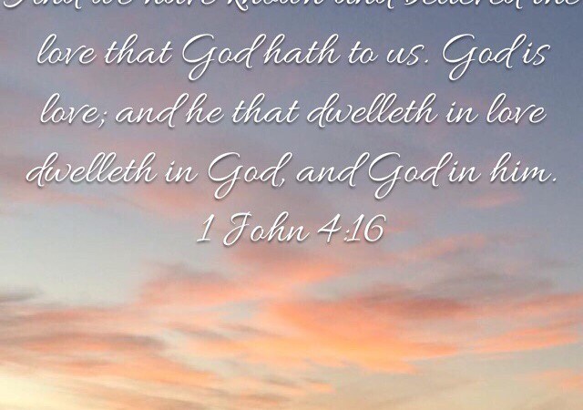 “And we have known and believed the love that God hath to us. God is love; and he that dwelleth in love dwelleth in God, and God in him.”