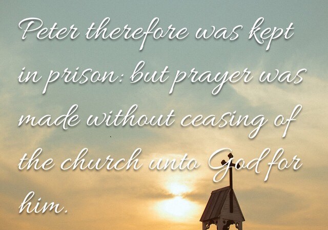 “Peter therefore was kept in prison: but prayer was made without ceasing of the church unto God for him.”