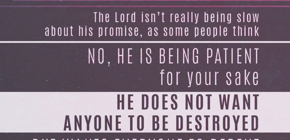 “The Lord is not slack concerning his promise, as some men count slackness; but is longsuffering to us-ward, not willing that any should perish, but that all should come to repentance.