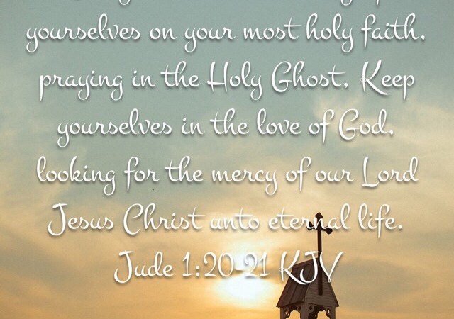 “But ye, beloved, building up yourselves on your most holy faith, praying in the Holy Ghost, Keep yourselves in the love of God, looking for the mercy of our Lord Jesus Christ unto eternal life.”