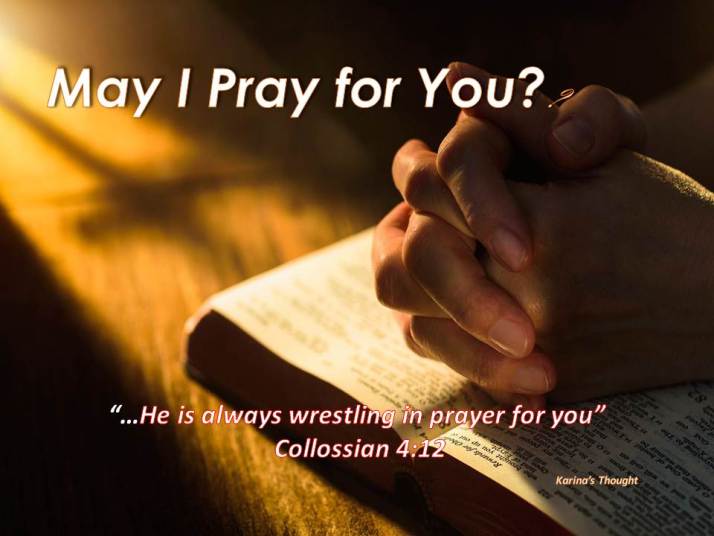 Hello my dear Readers! Here I come back with my own post. The idea of this post came out from my foster sister, Sandra who during these few days, with the different colors she wears a shirt that reads “May I pray for you?” When I asked her who you want to pray for, she earnestly said everyone who need to pray for. Beside pray for ourselves we should pray for others too.