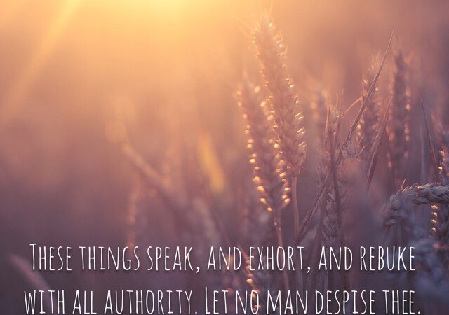 15 These things speak, and exhort, and rebuke with all authority. Let no man despise thee.