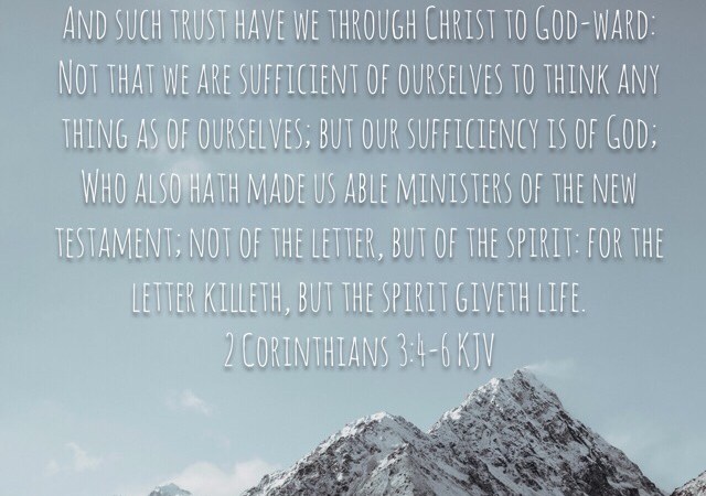 “And such trust have we through Christ to God-ward: Not that we are sufficient of ourselves to think any thing as of ourselves; but our sufficiency is of God; Who also hath made us able ministers of the new testament; not of the letter, but of the spirit: for the letter killeth, but the spirit giveth life.”