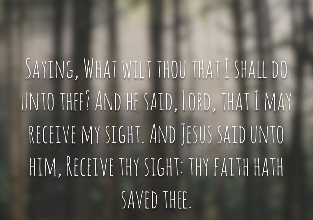 (35) And it came to pass, that as he was come nigh unto Jericho, a certain blind man Sat by the way side begging: (36) And hearing the multitude pass by, he asked what it meant. (37) And they told him, that Jesus of Nazareth passeth by. (38) And he cried, saying, Jesus, thou son […]