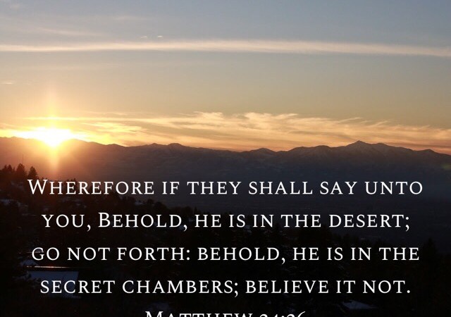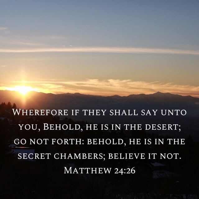 “Wherefore if they shall say unto you, Behold, he is in the desert; go not forth: behold, he is in the secret chambers; believe it not.”