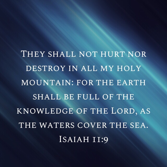 “They shall not hurt nor destroy in all my holy mountain: for the earth shall be full of the knowledge of the Lord, as the waters cover the sea.”