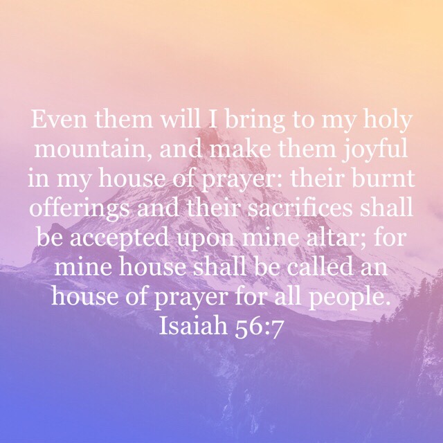 “Even them will I bring to my holy mountain, and make them joyful in my house of prayer: their burnt offerings and their sacrifices shall be accepted upon mine altar; for mine house shall be called an house of prayer for all people.”