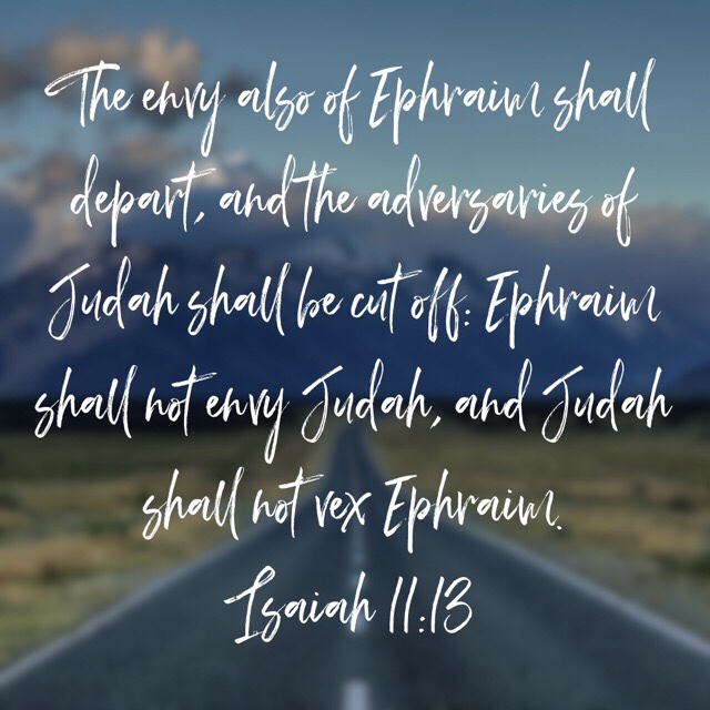 “The envy also of Ephraim shall depart, and the adversaries of Judah shall be cut off: Ephraim shall not envy Judah, and Judah shall not vex Ephraim.”