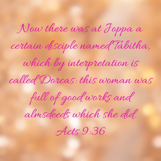 “Now there was at Joppa a certain disciple named Tabitha, which by interpretation is called Dorcas: this woman was full of good works and almsdeeds which she did.”