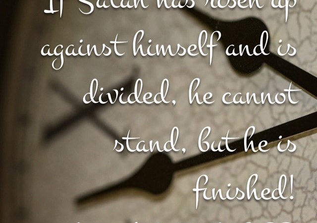 If Satan has risen up against himself and is divided, he cannot stand, but he is finished!