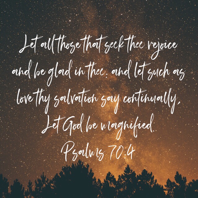 “Let all those that seek thee rejoice and be glad in thee: and let such as love thy salvation say continually, Let God be magnified.”