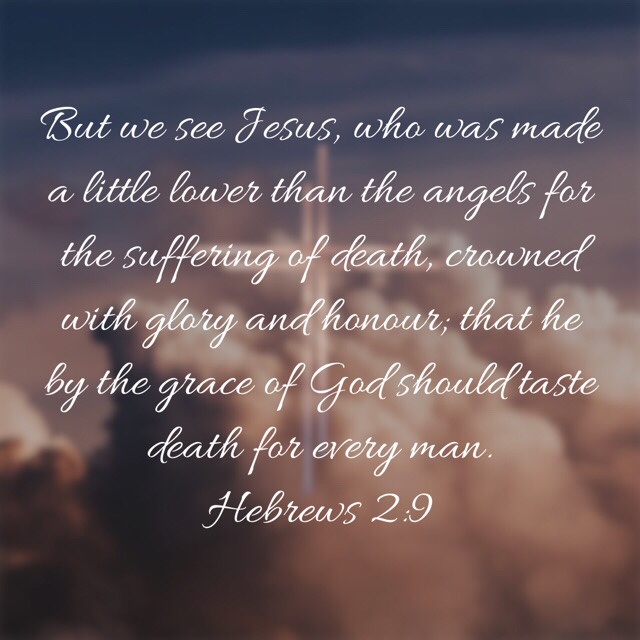 “But we see Jesus, who was made a little lower than the angels for the suffering of death, crowned with glory and honour; that he by the grace of God should taste death for every man.