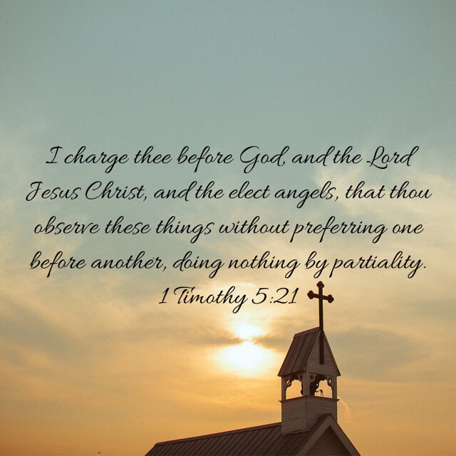 “I charge thee before God, and the Lord Jesus Christ, and the elect angels, that thou observe these things without preferring one before another, doing nothing by partiality.”