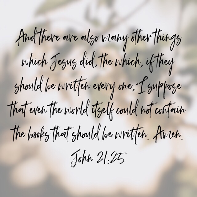 “And there are also many other things which Jesus did, the which, if they should be written every one, I suppose that even the world itself could not contain the books that should be written. Amen.”