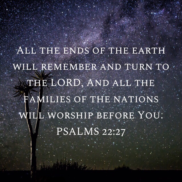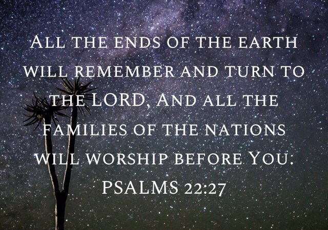 “All the ends of the earth will remember and turn to the LORD, And all the families of the nations will worship before You.”