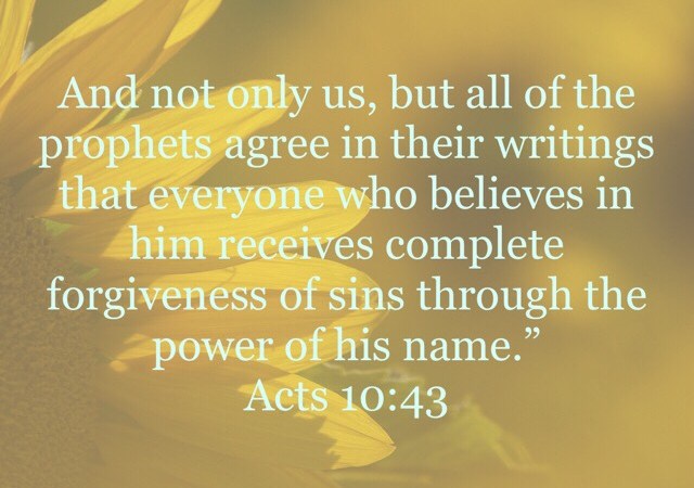 “And not only us, but all of the prophets agree in their writings that everyone who believes in him receives complete forgiveness of sins through the power of his name.”