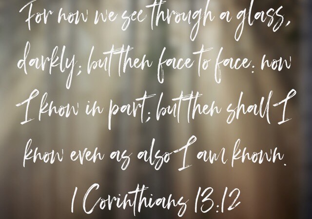 “For now we see through a glass, darkly; but then face to face: now I know in part; but then shall I know even as also I am known.”