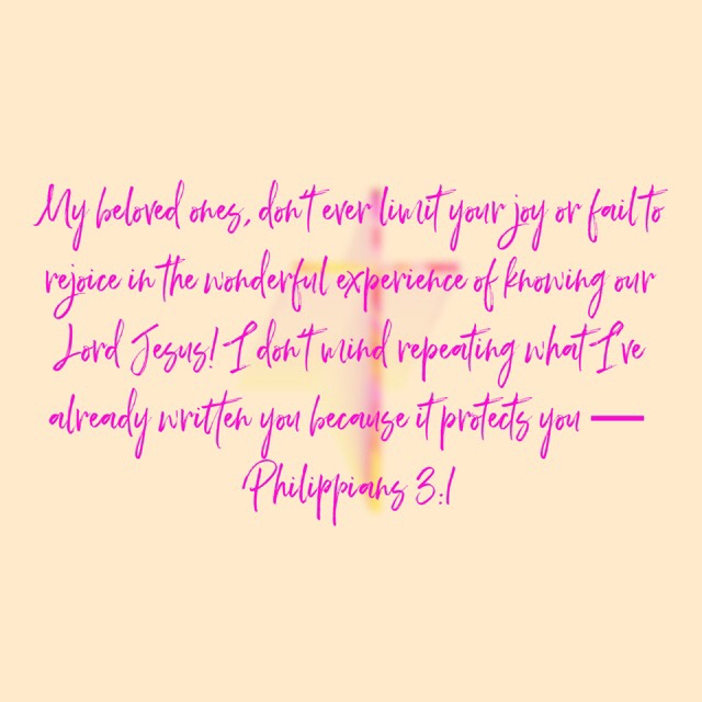 “My beloved ones, don’t ever limit your joy or fail to rejoice in the wonderful experience of knowing our Lord Jesus!