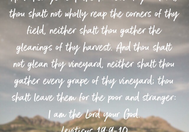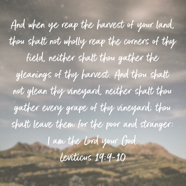 “And when ye reap the harvest of your land, thou shalt not wholly reap the corners of thy field, neither shalt thou gather the gleanings of thy harvest.