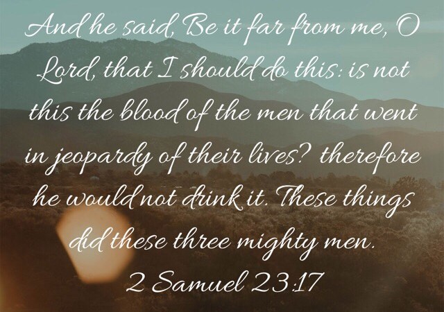 And he said, Be it far from me, O Lord, that I should do this: is not this the blood of the men that went in jeopardy of their lives?