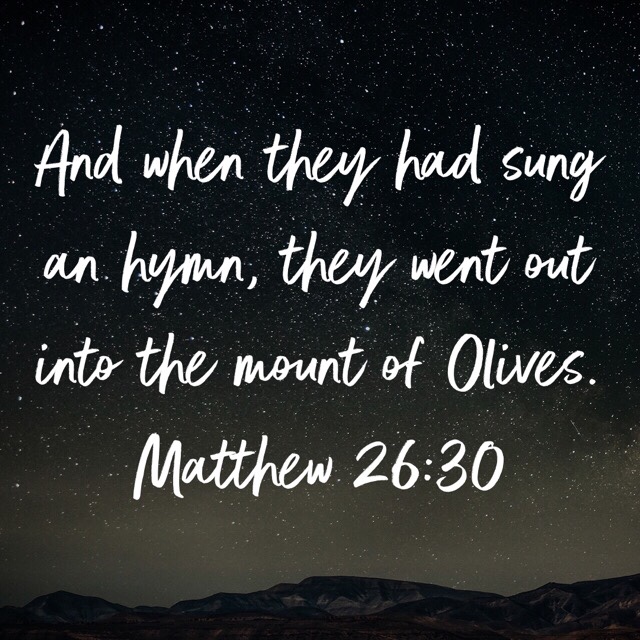 May 28, 2019 david For this is my blood of the new testament, which is shed for many for the remission of sins. “And when they had sung an hymn, they went out into the mount of Olives.” Matthew 26:30 KJV https://www.bible.com/1/mat.26.30.kjv Share this: Click to share on X (Opens in new window) X Click to share on Facebook (Opens in new window) Facebook Click to email a link to a friend (Opens in new window) Email Click to share on LinkedIn (Opens in new window) LinkedIn Click to print (Opens in new window) Print Like Loading...