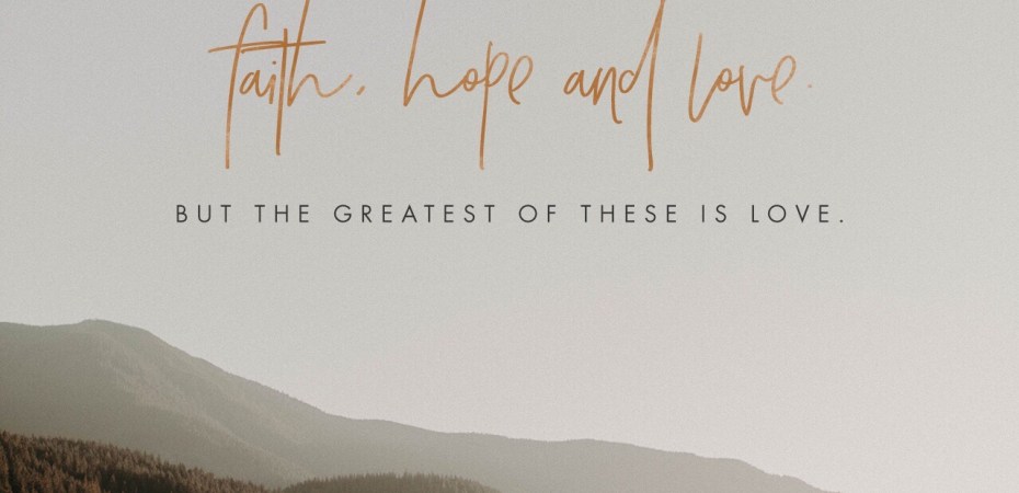 May 31, 2019 david Beareth all things, believeth all things, hopeth all things, endureth all things. “And now abideth faith, hope, charity, these three; but the greatest of these is charity.” 1 Corinthians 13:13 KJV https://www.bible.com/1/1co.13.13.kjv Share this: Share on X (Opens in new window) X Share on Facebook (Opens in new window) Facebook Email a link to a friend (Opens in new window) Email Share on LinkedIn (Opens in new window) LinkedIn Print (Opens in new window) Print Like Loading...