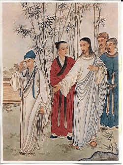 Chinese depiction of Jesus and the rich man (Mark 10) – 1879, Beijing, China