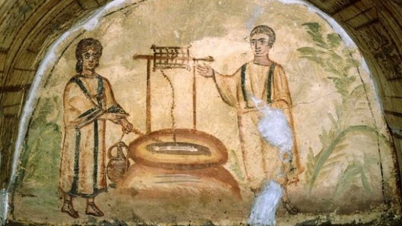 The frescoes in the Via Latina/via Dino Compagni Catacombs mix pagan and Christian themes.