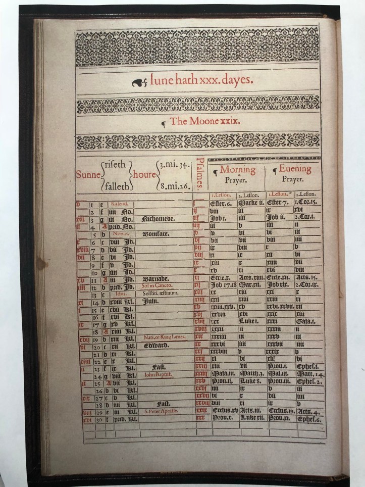 June 1611 Ecclesiastical Calendar Readings at Prayers