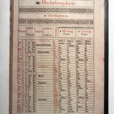 May 1611 Ecclesiastical Calendar Readings at Prayers