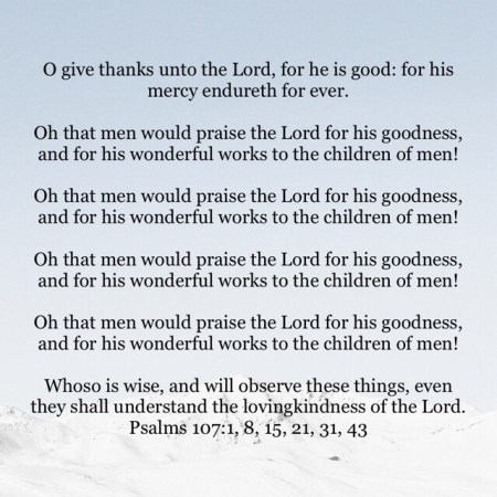 Oh that men would praise the Lord for his goodness, and for his wonderful works to the children of men!